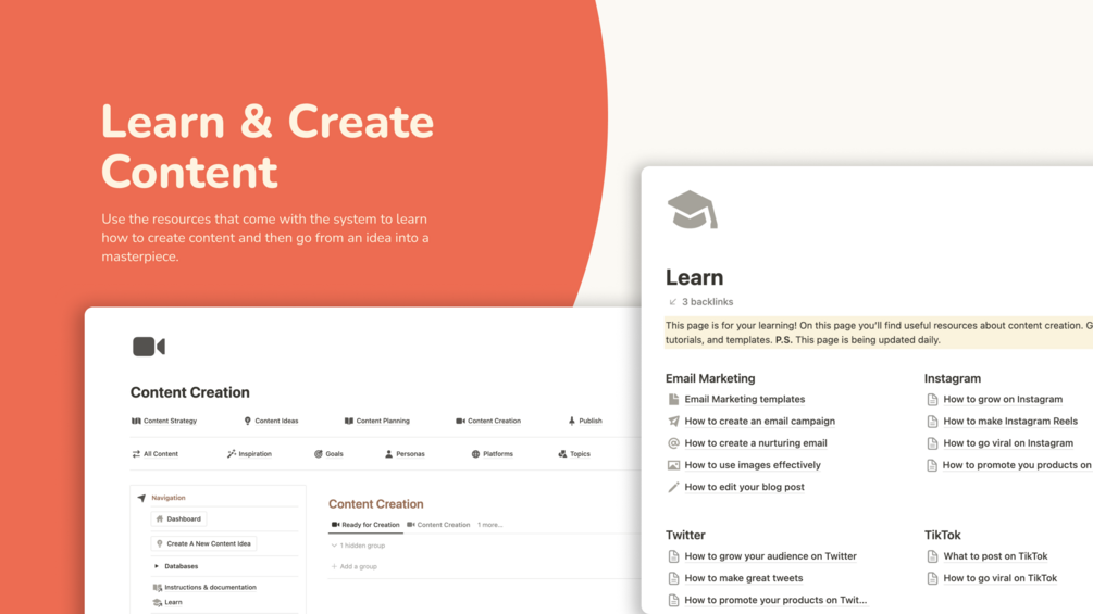 Preview the system NOW!The Content Creation System is a tool to ease your content creation process. It gives you a clear workflow to turn an idea into a masterpiece and to create more, easily.